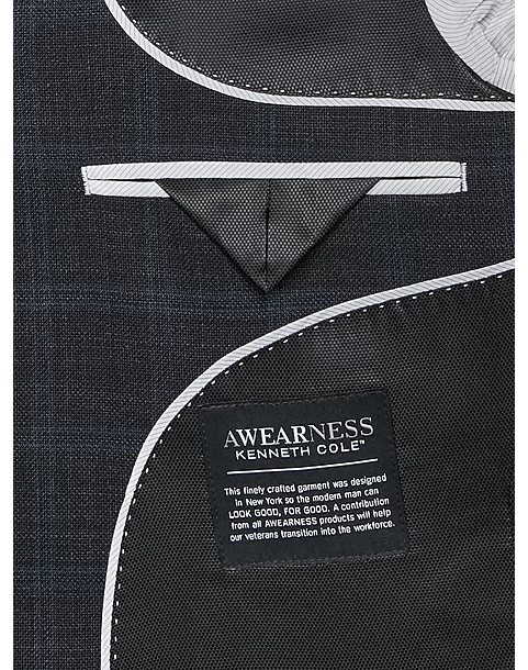 - 60% wool — 37% polyester — 3% spandex|Two button|Notch lapel|Side vents|Modern Fit|Awearness Kenneth Cole|