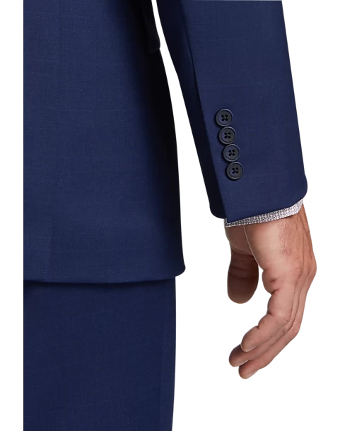 Rich, blue windowpane helps you create a standout menswear look. This fine suit by Awearness Kenneth Cole is conveniently pre-hemmed and flatters with a trim, Modern Fit.