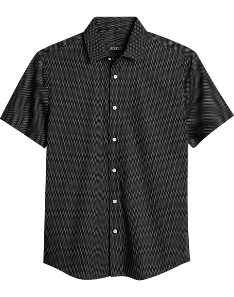 Awearness Kenneth Cole Slim Fit Short Sleeve Sport Shirt, Black Micro Dot