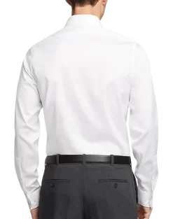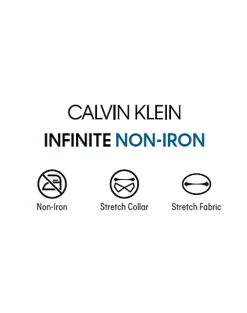 - 4% elastane|Spread collar|No pockets|Slim Fit|Stretch fabric|Flex comfort collar stretches up to 1/2 inch|Calvin Klein is a global lifestyle brand that exemplifies bold and progressive ideals with a minimal aesthetic. Modern fabrications and sleek designs for the global fashion market.|Calvin Klein Infinite Non-Iron|