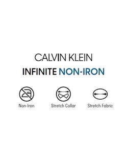 - 4% elastane|Spread collar|No pockets|Slim Fit|Stretch fabric|Flex comfort collar stretches up to 1/2 inch|Calvin Klein is a global lifestyle brand that exemplifies bold and progressive ideals with a minimal aesthetic. Modern fabrications and sleek designs for the global fashion market.|Calvin Klein Infinite Non-Iron|