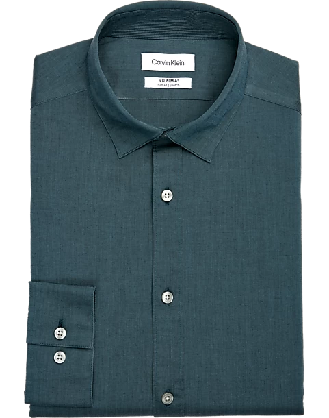 This Calvin Klein non-iron dress shirt is made with Supima domestic long staple cotton fiber. Made for easy care and comfort, this machine-washable and wrinkle-resistant style does not require ironing. All solid colors within this program are made with 100s 2-ply yarn. Complementing the program is a new collar that delivers a refined appearance. The new collar features an updated shape, elevated construction with increased stitches per inch, and built in stays to prevent tip curling. Slim Fit is slim and tapered across the chest, shoulders, armholes, waist and sleeves without compromising on comfort. Recommended for more triangle body types (broad shoulder and chest, narrow waist and hips).