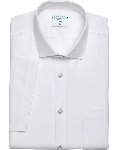 &Collar Pacific Slim Fit Stain-Resistant Short Sleeve Dress Shirt, White