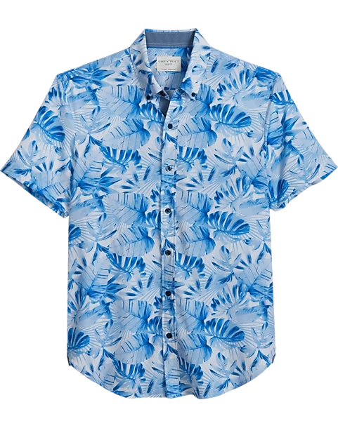 Con.Struct Slim Fit Short Sleeve Sport Shirt Blue Palm Leaf