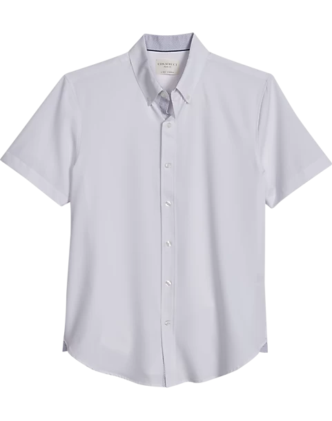 Keep your cool in the heat with this short-sleeve sport shirt from Con.Struct. Made with a breathable poly blend, button-down collar, and sleek Slim Fit, you can pair it with shorts, jeans, khakis, and other laid-back slacks for dressed-down perfection.