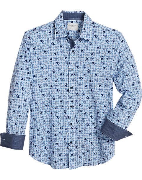 Con.Struct Slim Fit Spread Collar Sport Shirt, Blue Dogs