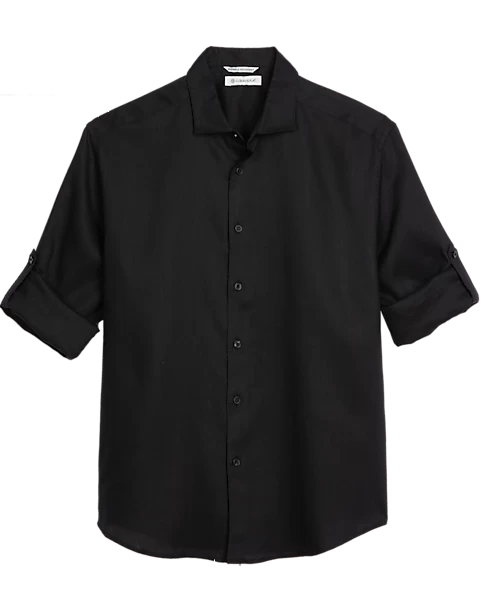 This classic linen blend shirt by Cubavera features roll up sleeves to keep you cool and comfortable. The trim, Modern Fit is flattering with jeans, shorts or chinos.