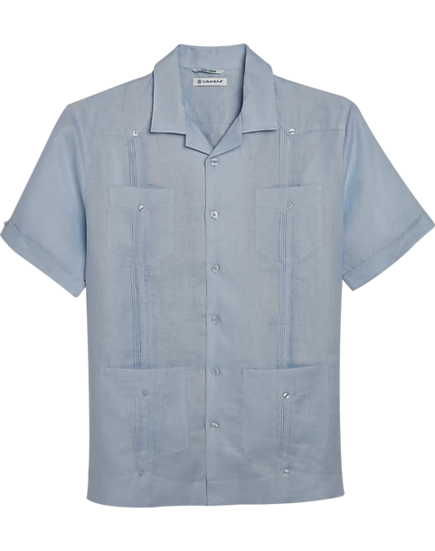 Be the first to review “Cubavera Modern Fit Short Sleeve Linen Guayabera Shirt, Light Blue” Cancel reply