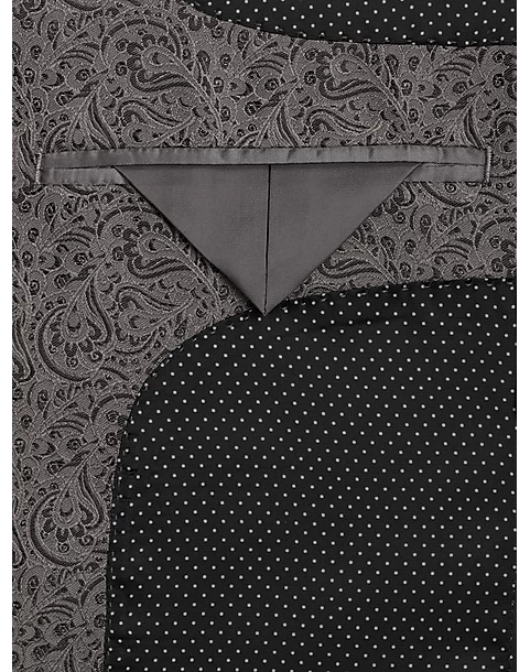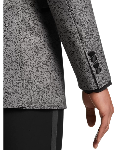 Styled for those special nights out, this dinner jacket from Egara features a satin-edge notch lapel and a tradition paisley pattern in warm gray.