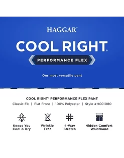 - flat front|Pre-hemmed|Cool Right®|Performance Flex|Classic Fit|Haggar|