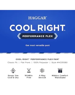 - flat front|Pre-hemmed|Cool Right®|Performance Flex|Classic Fit|Haggar|
