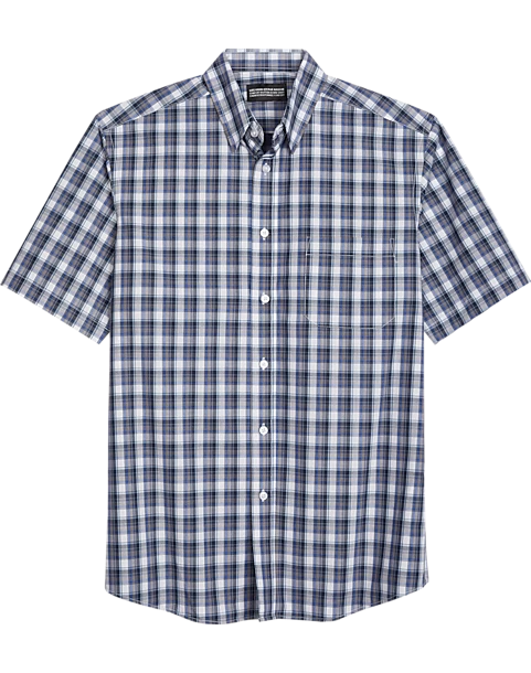 Haggar Modern Fit LIFE KHAKI™ Short Sleeve Plaid Sport Shirt, Dark Blue Plaid