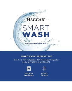 Made with innovative Smart Wash™ fabrics designed for home washing and drying machines, this Haggar suit separates coat is convenient, versatile, and stylish. Woven into a sleek, Slim Fit with ample stretch, it will bring new life to your dress casual attire. Suit separates allow you to choose coat, pant, and vest sizes separately so you can attain an ideal fit, feel, and look.