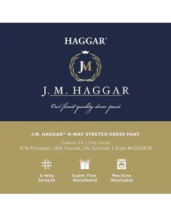 Whether you’re stepping into the office or out on the weekend, these J. M. Haggar dress pants fit your needs perfectly. The pants offer exceptional style, quality, and flexibility for you and your wardrobe. Made from the finest fabric with stretch built right into the fibers for comfort all day long.
