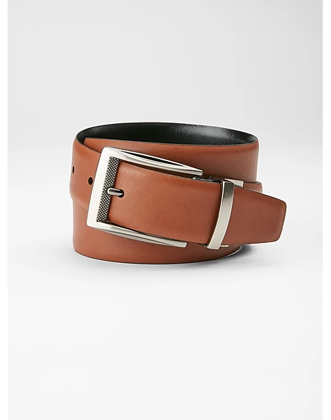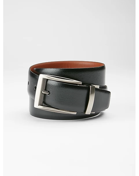 Offering two looks in one design, this reversible belt from Joseph Abboud doubles your options. Styled with feather edging and a silver-tone buckle, it mixes and matches effortlessly with a variety of looks.