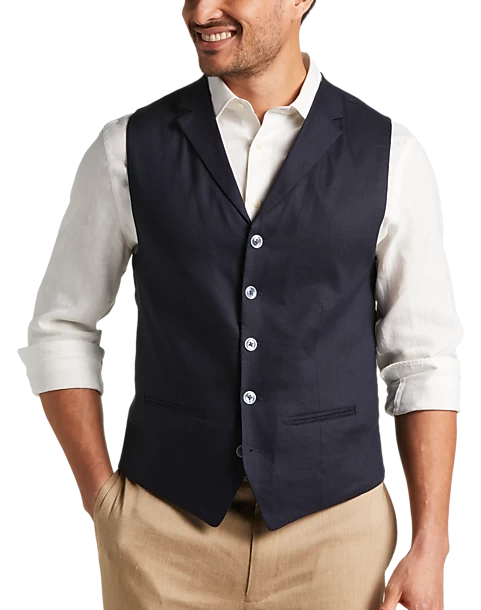 Add instant vintage appeal to your dress casual attire with this dapper linen vest from Joseph Abboud. Cut from a fine linen blend with a touch of stretch into a Modern Fit, it is styled with a notch lapel to sharpen your look.