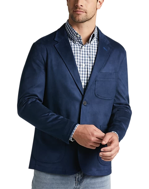- Polyester blend ultra-suede|Notch lapel|Two-button closure|Patch pockets|Modern Fit|Joseph Abboud|