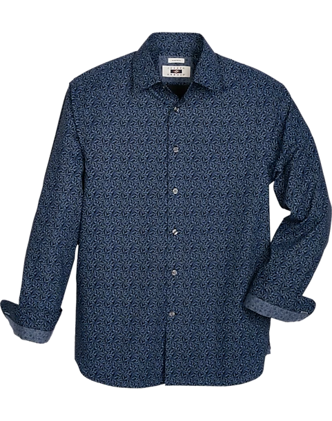 Rendered in navy blue with a subtle pattern, this woven cotton sport shirt from Joseph Abboud is the perfect addition to the modern man’s wardrobe.