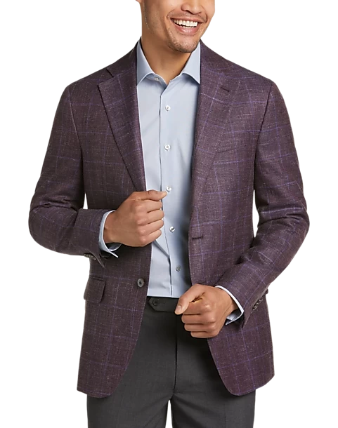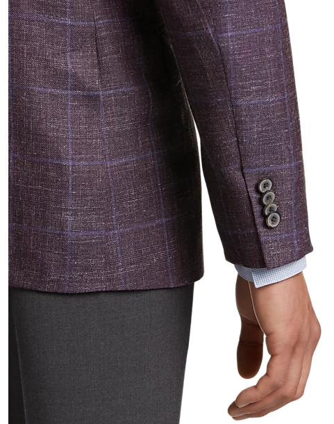 Refresh your look with this berry plaid sport coat by Joseph Abboud. It features a trim, Slim Fit with the timeless look of a two button closure and notch lapel.