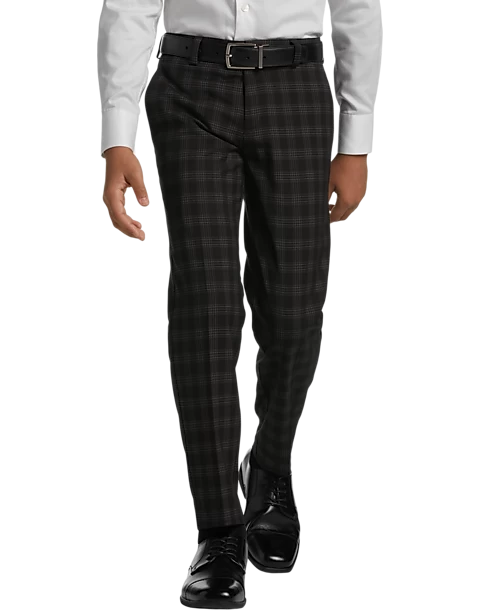 He’ll be just like the big boys in this refined and versatile two-button black plaid coat with coordinating pants. The coat features classic side vents, while the pants offer a modern, flat front.