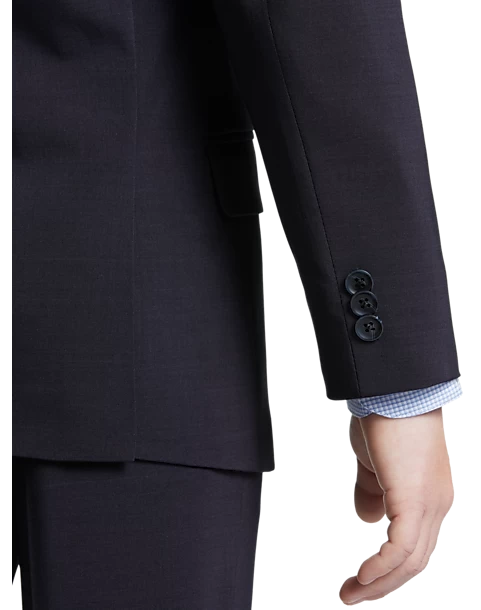 He will be looking his best in this handsome suit from the Kenneth Cole Reaction collection. The stylish suit comes with a jacket that features a two-button closure and side vents. The matching pants have a crisp, flat front for that just-right look.