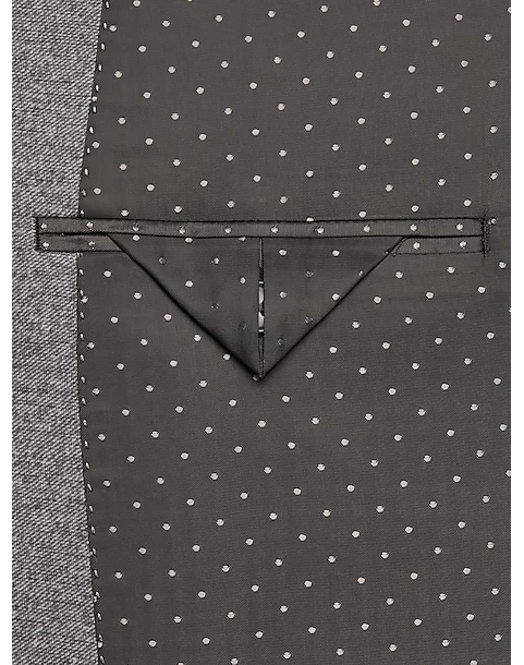 - 90% polyester 6% viscose 4% spandex|Notch lapel|Two-button closure|Flap pockets|Side vents|3/8 lined|Classic Fit|Michael Strahan|