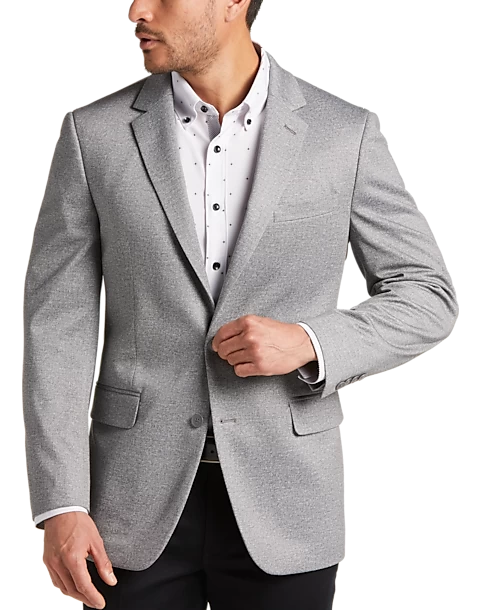 Add this to your lineup of sport coats and you’ll be pleased with its classic good looks as well as its wearable ease. The softer construction knit coat has a notch lapel, two-button closure, flap pockets and side vents. 3/8 lined.