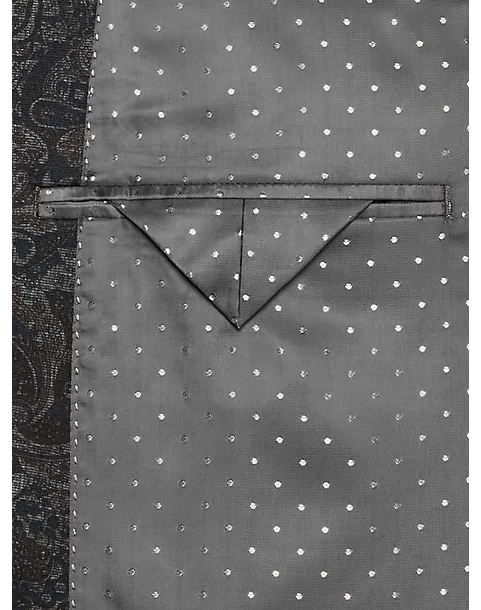 - 78% polyester — 18% rayon — 4% spandex|Two button|Notch lapel|Side vents|Fabric has stretch|Classic Fit|