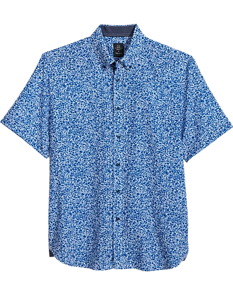 Michael Strahan Modern Fit 4-Way Stretch Short Sleeve Sport Shirt, Blue Floral