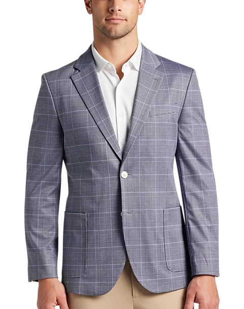 - 89% polyester 8% rayon 3% spandex|Notch lapel|Two-button closure|Patch pockets|Modern Fit|Michael Strahan|