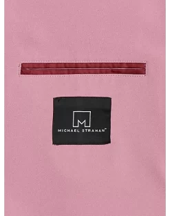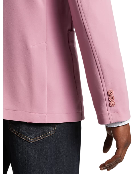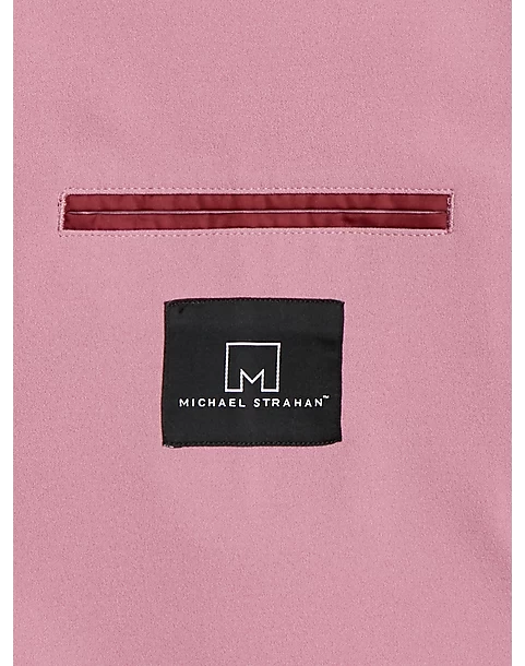 - Polyester blend crepe knit|Notch lapel|Two-button closure|Patch pockets|Modern Fit|Michael Strahan|
