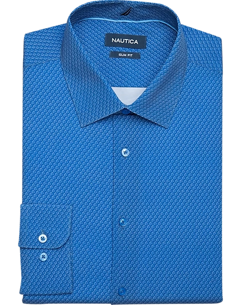 - Wrinkle resistant|Polyester blend|Spread collar|No pockets|Four-way stretch|Slim Fit|Nautica|