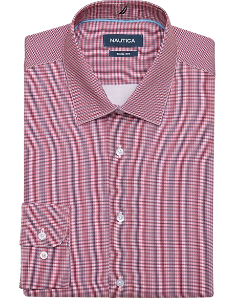 A micro check print gives this dress shirt from Nautica the same versatility of a solid hue. It’s tailored from a comfortable fabric blend with four-way stretch that’s designed to flex with your every move. Slim Fit is slim and tapered across the chest, shoulders, armholes, waist and sleeves without compromising on comfort. Recommended for more triangle body types (broad shoulder and chest, narrow waist and hips).