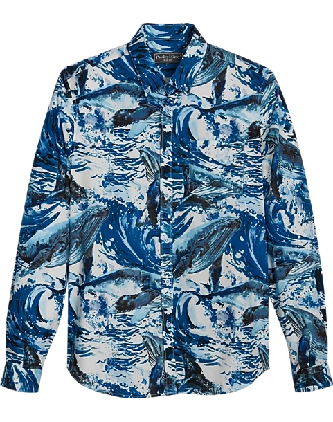 In a sea of plain shirts, stand out in this Paisley & Gray sport shirt in a bold whale pattern. The fit is slim and tailored.