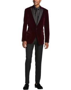 Make an entrance with this jacket from Paisley & Gray. Styled with a velvet peak lapel and a modern, Slim Fit, it’s perfect for holiday parties and other formal occasions.