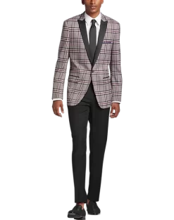 Styled with a bold, plaid print and a peak lapel in a solid color, this Slim Fit jacket from Paisley & Gray has a trim look and a modern attitude.