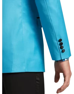Make a bold, sophisticated statement with this finely crafted dinner jacket by Paisley & Gray. Featuring a vibrant hue paired with a black satin peak lapel, it is tailored with a streamlined Slim Fit to offer a sleek, modern look for your next special occasion.