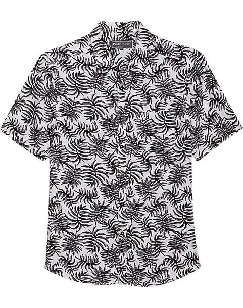 Paisley & Gray Slim Fit Spread Collar Short Sleeve Sport Shirt, Black And White Fern