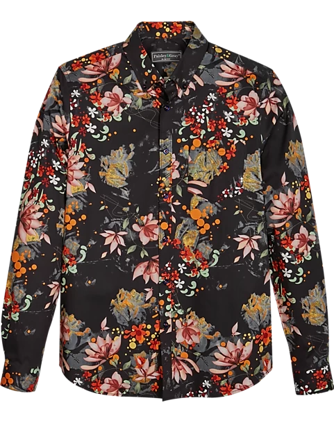 Paisley & Gray Slim Fit Spread Collar Sport Shirt, Black Paint Splatter Floral