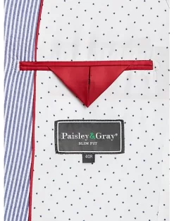 Look sharp and dapper in this classic, all-cotton seersucker suit separates coat from Paisley & Gray featuring a Slim Fit. With suit separates you can choose coat, pant, and/or vest sizes separately for an ideal fit.