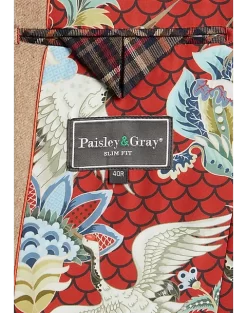 - 50% wool 50% polyester|Two button|Peak lapel|Side vents|Coordinating pieces sold separately|Slim Fit|Paisley & Gray|