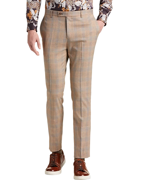 Paisley & Gray Slim Fit Suit Separates Pants, Tan And Gray Plaid