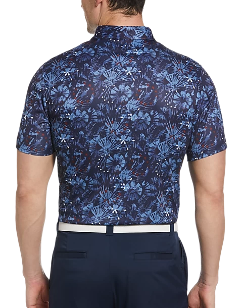 PGA Tour Classic Fit Printed Polo, Navy Fireworks