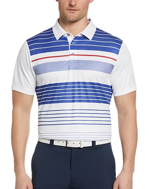 PGA Tour Classic Fit Printed Polo, White Energy Stripe