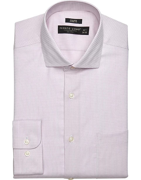Pronto Uomo Classic Fit Spread Collar Dress Shirt, Pink Check
