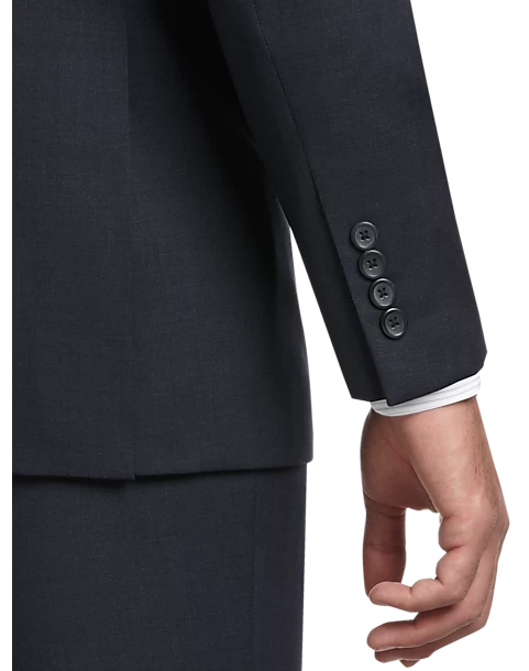 In classic navy sharkskin, this suit separates coat has a notch lapel and two-button closure. Pair it with its matching vest and slacks (sold separately) for a perfectly coordinated look in just the sizes you need.