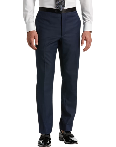 Complete your formalwear look with these Modern Fit tuxedo pants. They feature flat front styling and are pre-hemmed. Suit Separates let you choose your coat, pants and vest sizes separately for your best fit ever.