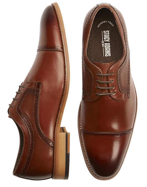 A versatile shoe that will spend little time in your closet, these cap-toe oxfords look sharp in supple leather with fine detailing and brogued embellishments. They feature elegant lines of perfing, a sleek profile, and modern stacked heel. To make it feel as good as it looks, it also has a plush memory foam insole for long-term, comfortable wear.