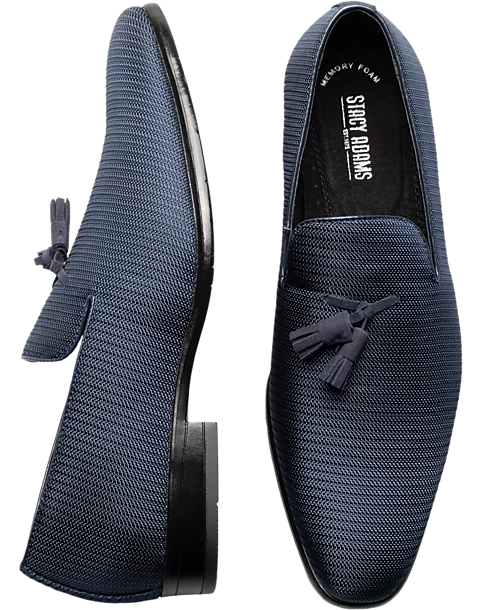 - Woven textile upper|Plain toe|Slip on|Cushioned insole|Manmade outsole|Starting in 1875 the Stacy Adams Shoe Company has long been part of American culture. Stacy Adams is a lifestyle brand designing quality dress shoes and cutting edge casuals for distinguished gentlemen who know true style.|