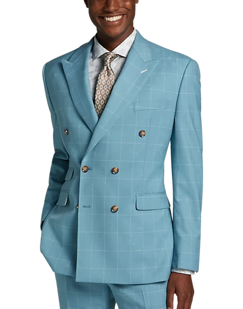 - 52% wool 46% polyester 2% spandex|Double-breasted closure|Peak lapel|Side vents|Pick-stitch details|Classic Fit|Tayion|